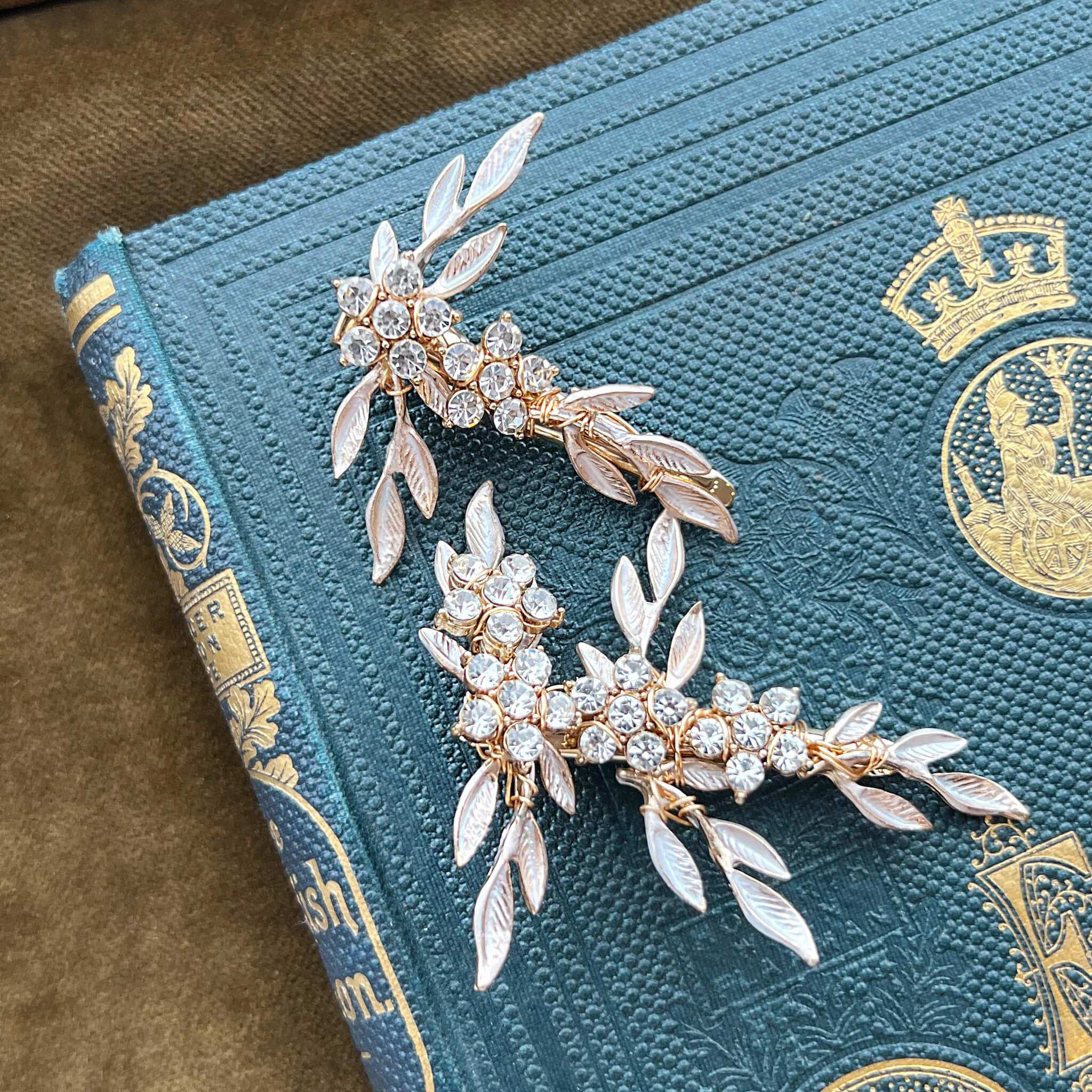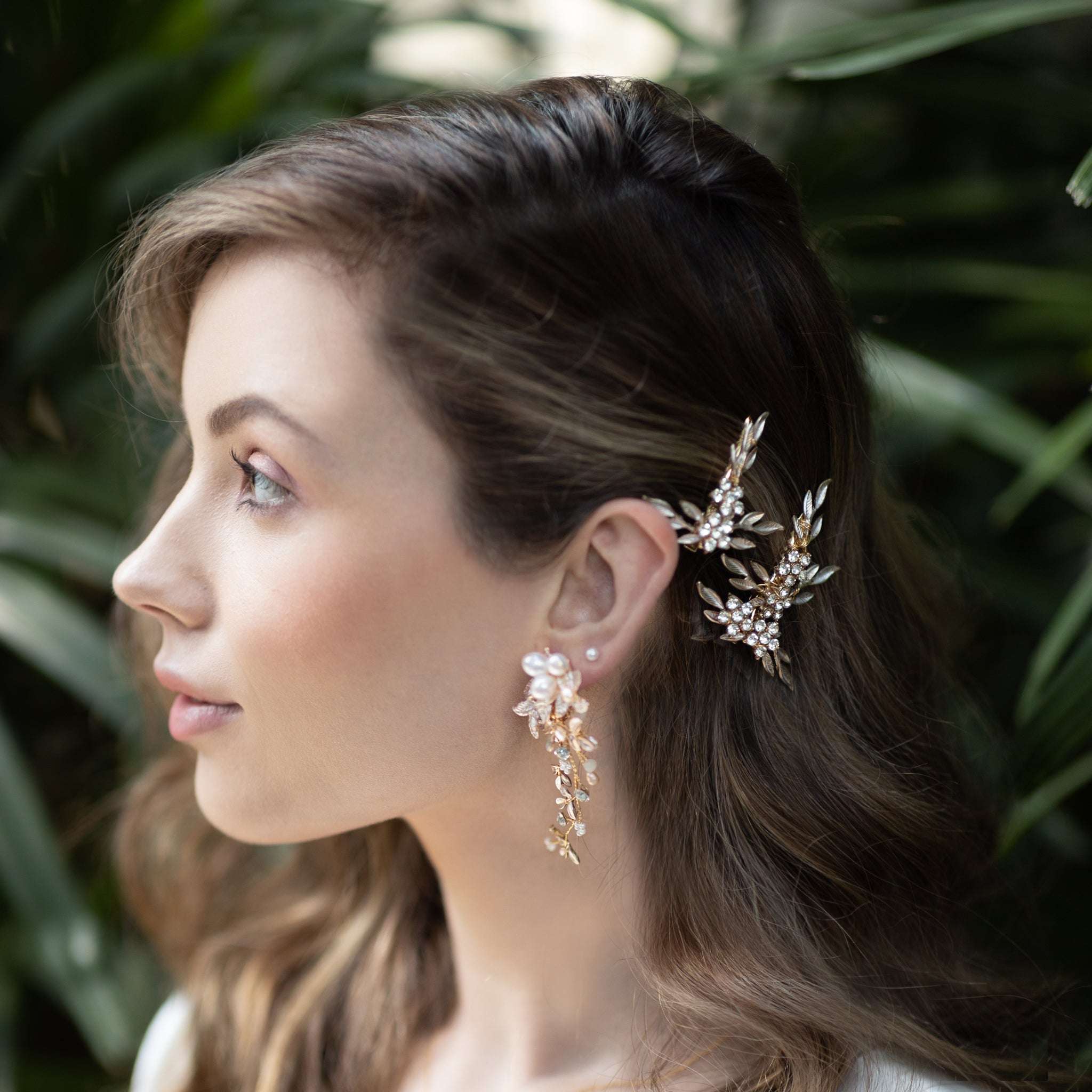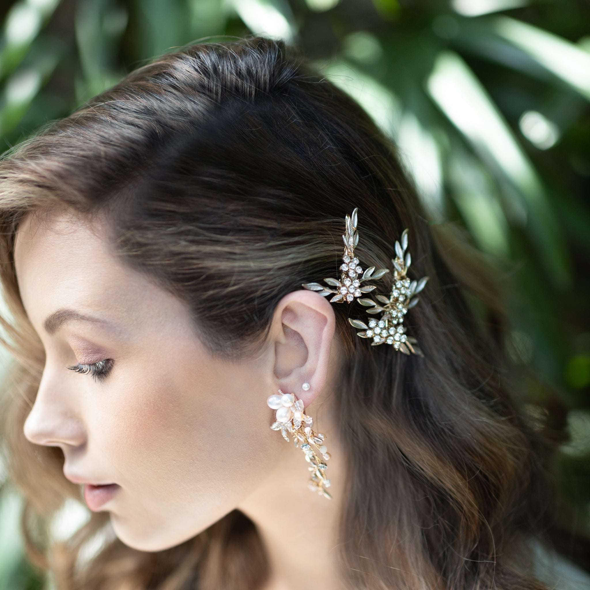 Nike, Crystal Floral Golden Leaf Bridal Clip Set
