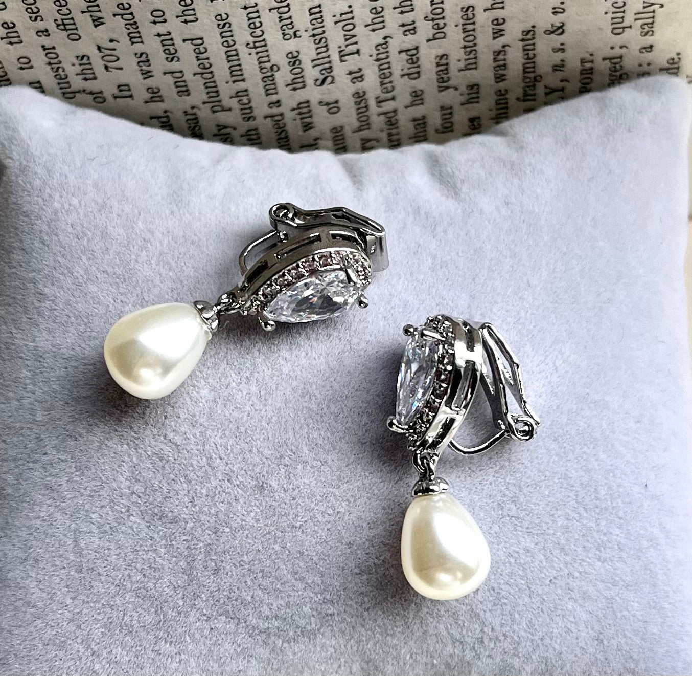 New to the clip-on collection these gorgeous teardrop shaped freshwater pearl earrings are so elegant and ideal for your wedding day.