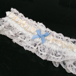 Following with tradition this garter has something blue just in case and is made from beautiful soft ivory lace and baby blue satin ribbon bow.